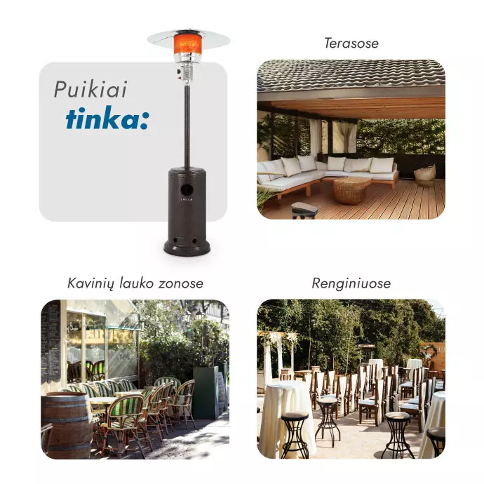 Mūsų siūlomas Heatum Redem dujinis šildytuvas turi daug pranašumų, lyginant su panašios skėčio / grybo formos dujiniais šildytuvais. Dujinis šildytuvas laukui jau pamėgtas ir vertinamas mūsų klientų. Pateikiame keletą savybių, kuriomis šis Heatum Redem šildytuvas išsiskiria: