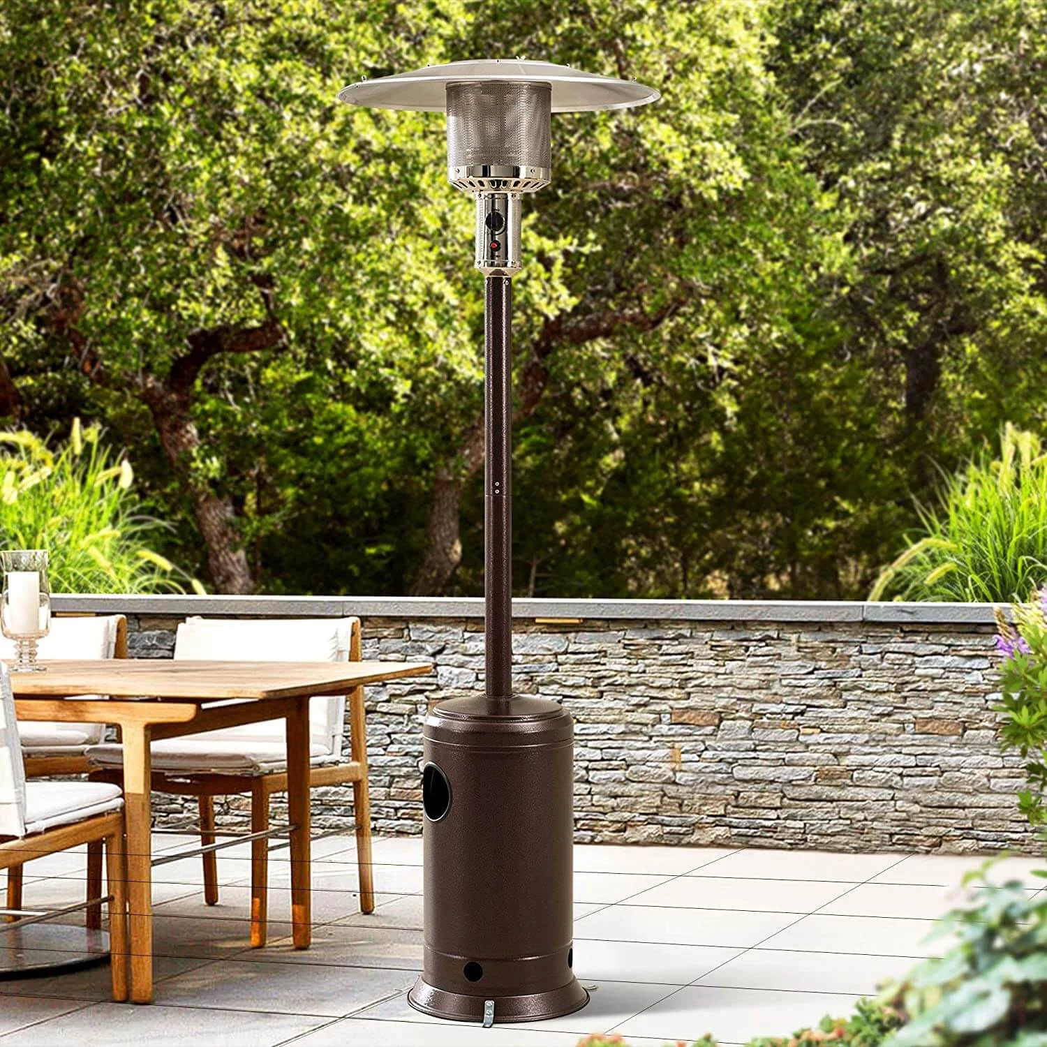 Skėčio / grybo formos Heatum Redem dujinis šildytuvas – itin stilingas ir novatoriškas pasirinkimas Jūsų aplinkai. Šie dujiniai lauko šildytuvai pagaminti iš kokybiško, patvaraus, ilgaamžio milteliniu būdu dažyto plieno, todėl puikiai tarnaus ilgus metus ir nepraras estetiškos išvaizdos. Išskirtinis skėčio / grybo formą primenantis dizainas suteikia elegantišką ir prabangų įvaizdį, kuria pridėtinę vertę Jūsų renginyje ar namuose, todėl šie rudos spalvos dujiniai šildytuvai laukui itin mėgstami vestuvėse, jubiliejuose, restoranuose, namų terasose. Įjungus šį Heatum Redem lauko šildytuvą, šis iš karto pradeda skleisti malonią šilumą, atsižvelgiant į oro sąlygas, šildymo intensyvumą lengvai reguliuosite valdymo skydo pagalba. Heatum Redem šildytuvo dėka, galėsite jaukiai praleisite dar daugiau laiko lauke net ir esant šaltam klimatui, o be tiesioginės savo funkcijos, liepsna einanti per visą šildytuvo korpusą suteikia šviesos ir kuria jaukumo pojūtį.