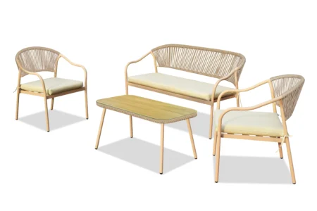 Praleiskite karštas vasaros dienas patogiai mėgaudamiesi saulės voniomis. Šis stilingas terasos baldų komplektas Martinelli Tuscan sukurs tobulas lauko erdves, kurios suburs draugus, artimuosius ar šeimos narius. Komforto jums suteiks erdvios kėdės, primenančios foteliukus, dvivietė sofa, ant kurios malonu sėdėti ir atsiremti, bei elegantiškas kavos staliukas užkandžiams ir gaiviesiems gėrimams pasidėti.