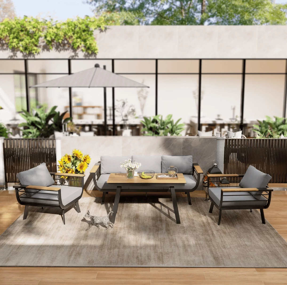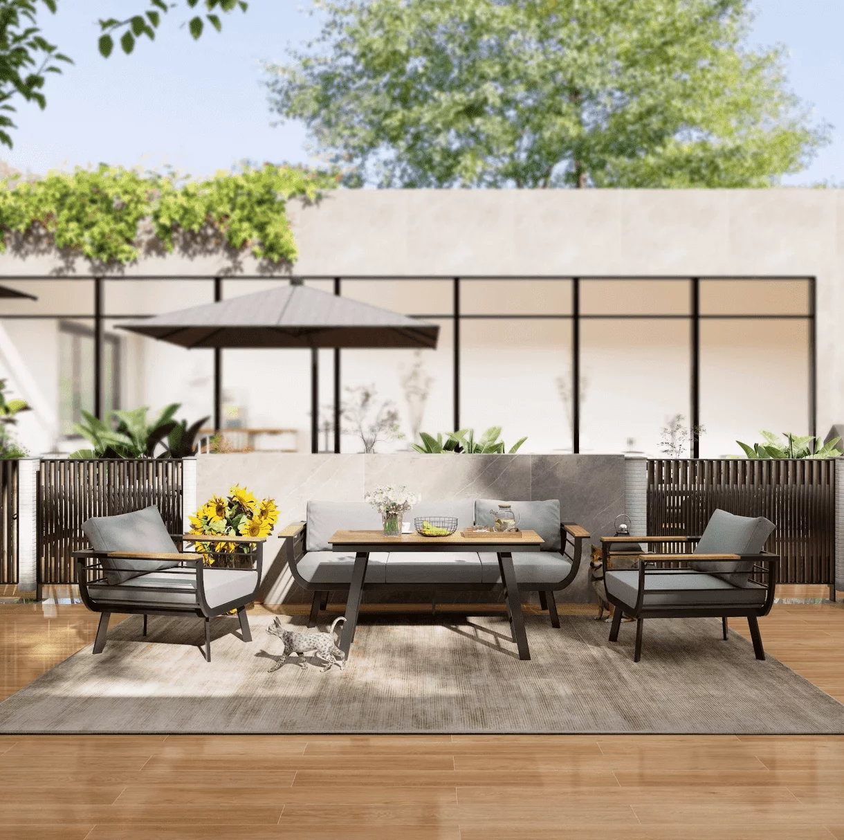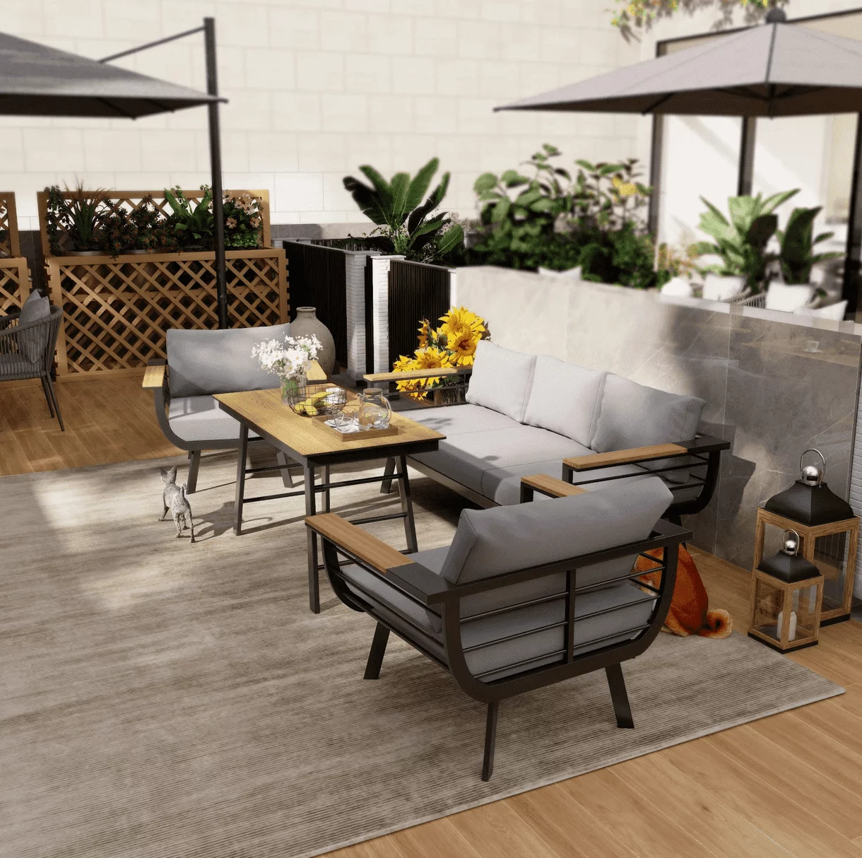 Minimalistinio stiliaus lauko baldai Martinelli Milano Pilki (keturiems žmonėms)