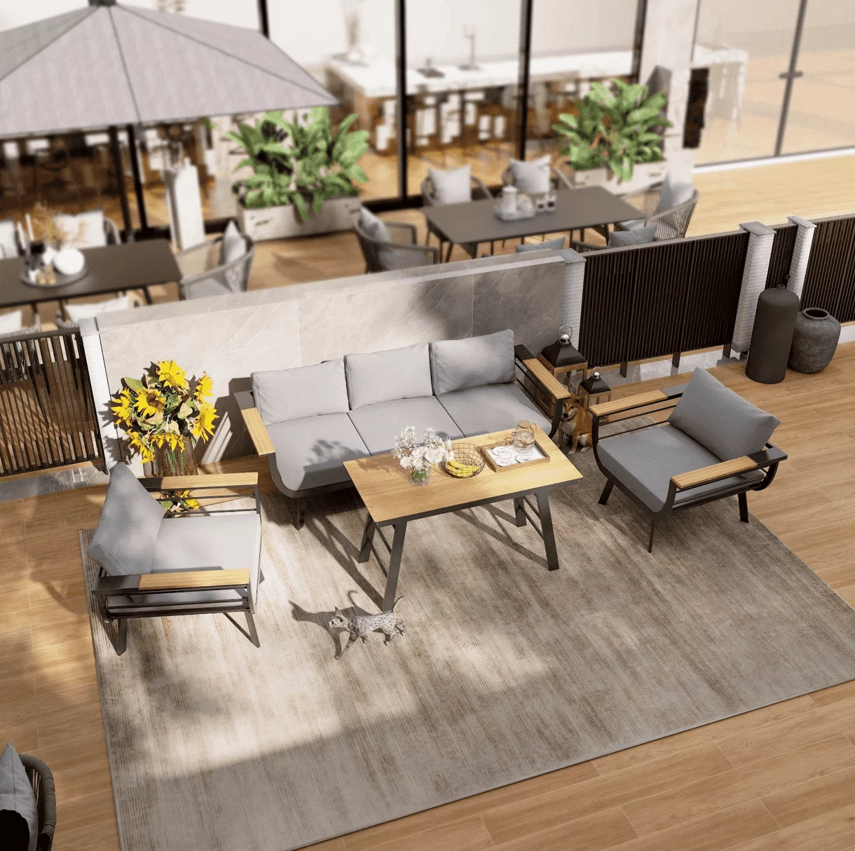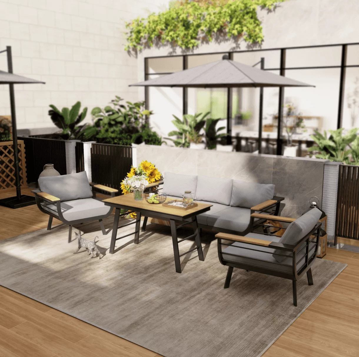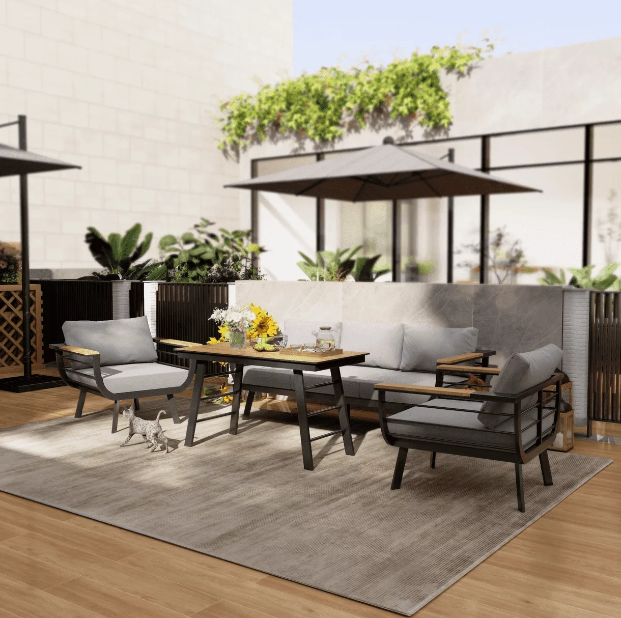 Minimalistinio stiliaus lauko baldai Martinelli Milano Pilki (keturiems žmonėms)