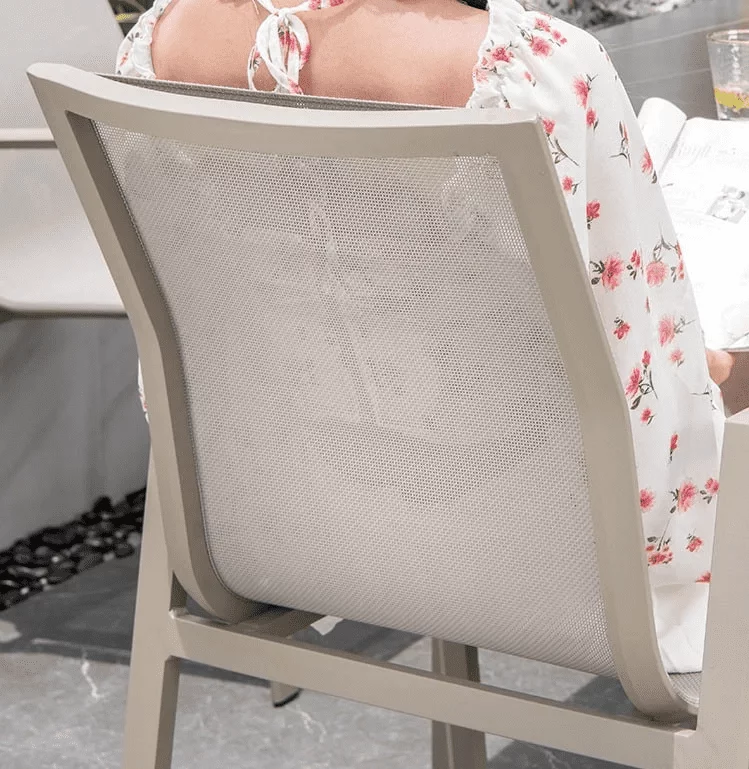 Baldų korpusas pagamintas iš aliuminio, dažyto milteliniu būdu. Metalo kokybė yra bene aukščiausia – aliuminis nebijo vandens ir nerūdija. Be to, jis yra vienas lengviausių metalų. Todėl iš jo pagamintus stalą ir kėdes be problemų pernešite iš vienos vietos į kitą. Kadangi Esperi baldai yra ilgaamžiški, jie jums tarnaus ne vieną sezoną.