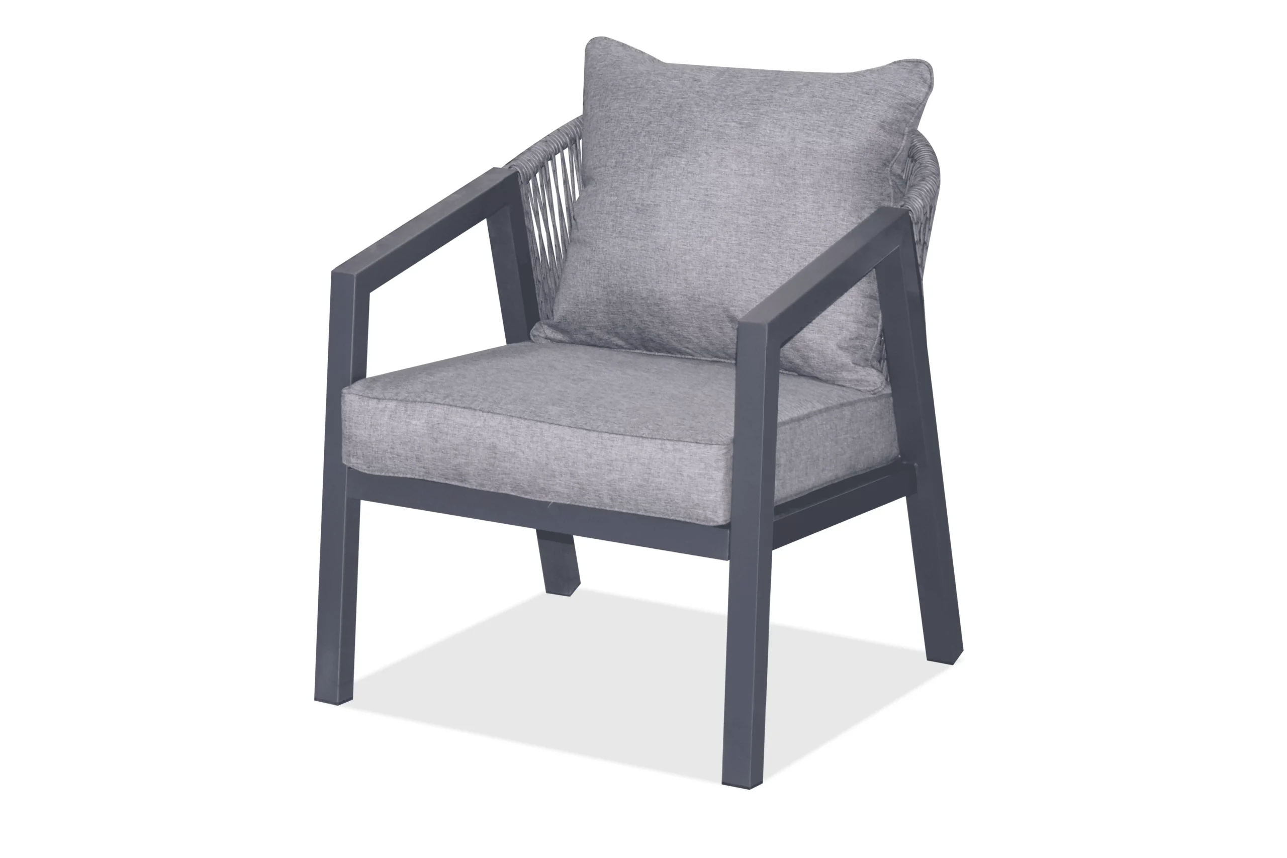 Elegantiški Martinelli pilki lauko baldai – puikus pasirinkimas norintiems lauko, terasos ar balkono erdvėms suteikti lengvumo ir erdvumo jausmą. Baldai turi minimalias pintas apdailos detales, į kurias malonu įsiremti. Maksimalų patogumą užtikrina gabardino pagalvėlės. Pasibaigus šiltajam lauko sezonui baldus lengva perkelti į kitą vietą, sandėliuoti palėpėje, garaže ar sandėliuke.