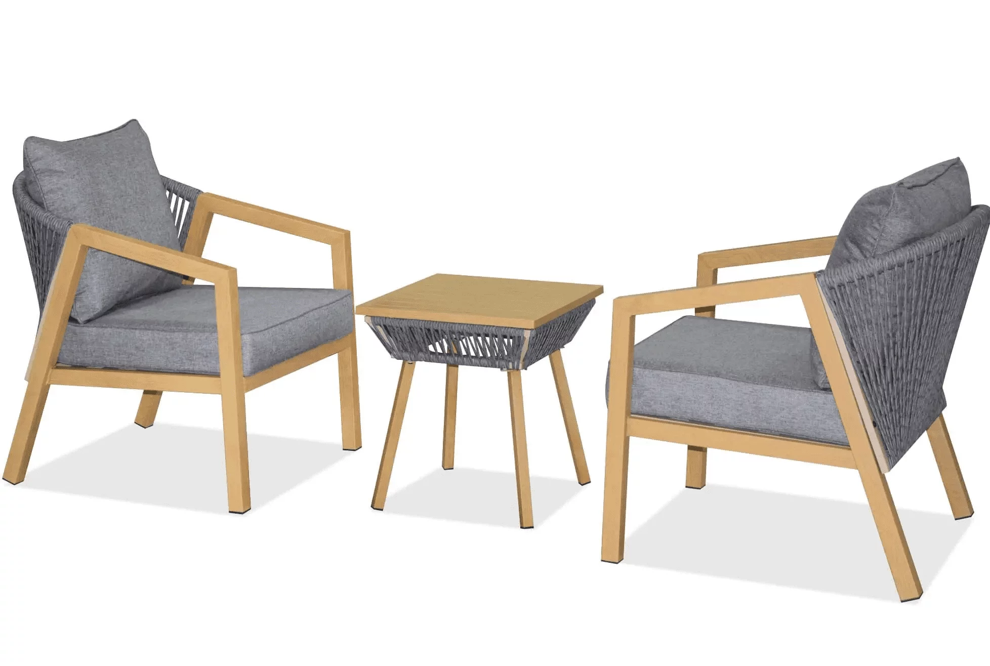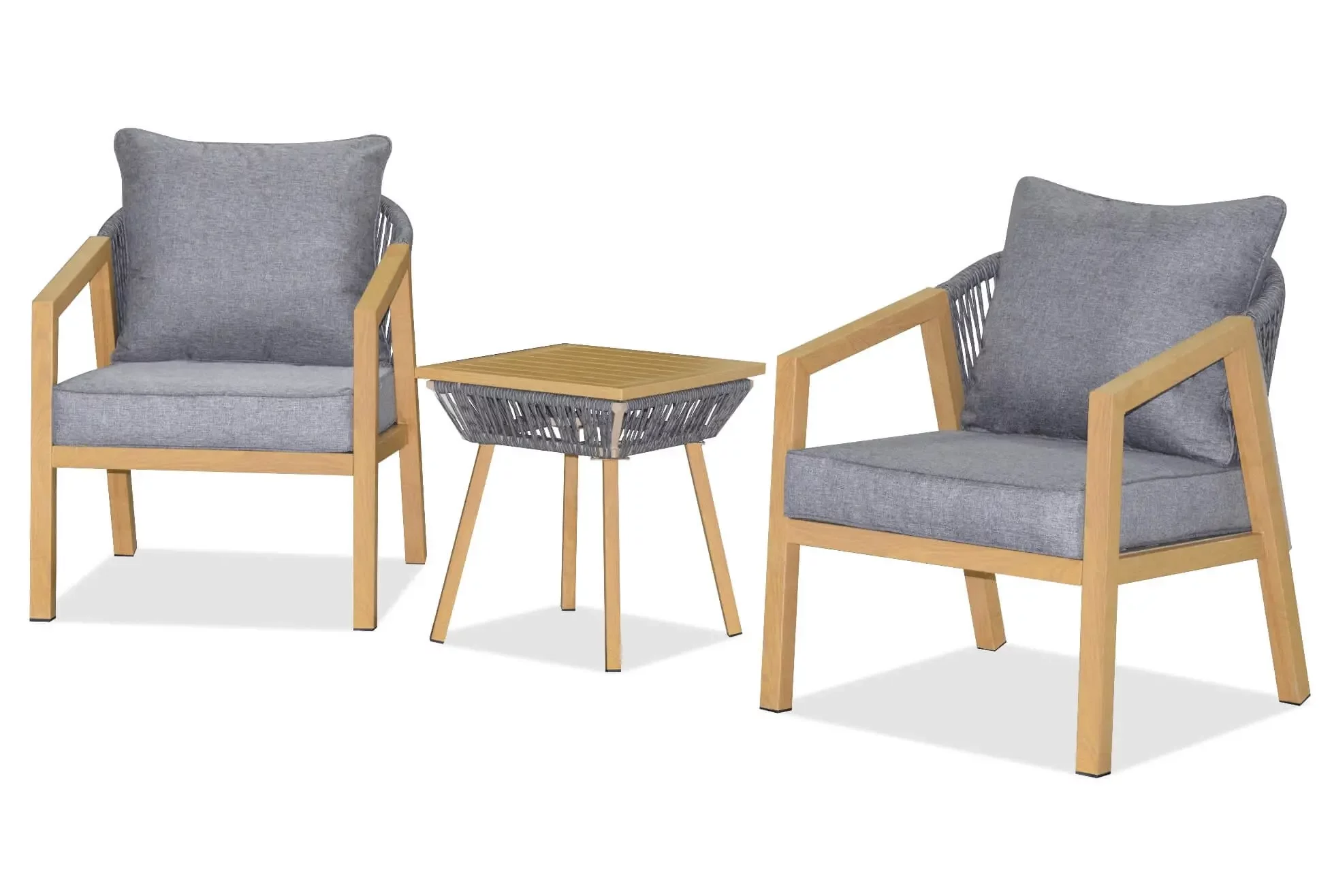 Jei jaučiate silpnybę mediniams, natūraliems ir rankų darbo lauko baldams – jums patiks šis šviesiai pastelinių spalvų komplektas. Jis yra įkvėptas gamtos, todėl lengvai sukurs ramybės ir poilsio oazę balkone, teras ar kitose laisvalaikio erdvėse. Taip pat šis lauko baldų komplektas tinka ir lauko kavinių bei restoranų erdvėse.