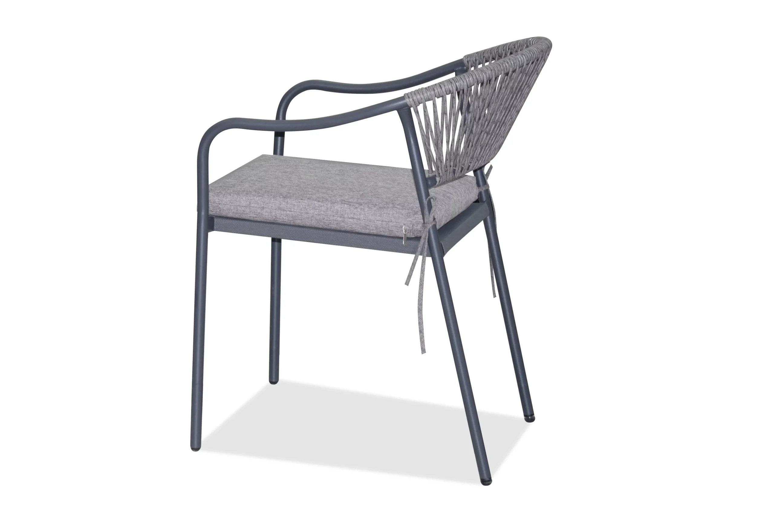- Dvi plieninės kėdės su pintomis apdailos detalėmis. Šie akcentai leidžia lengvai integruoti lauko baldus į bet kokio stiliaus ar spalvų erdves, suteikiant joms lengvumo.