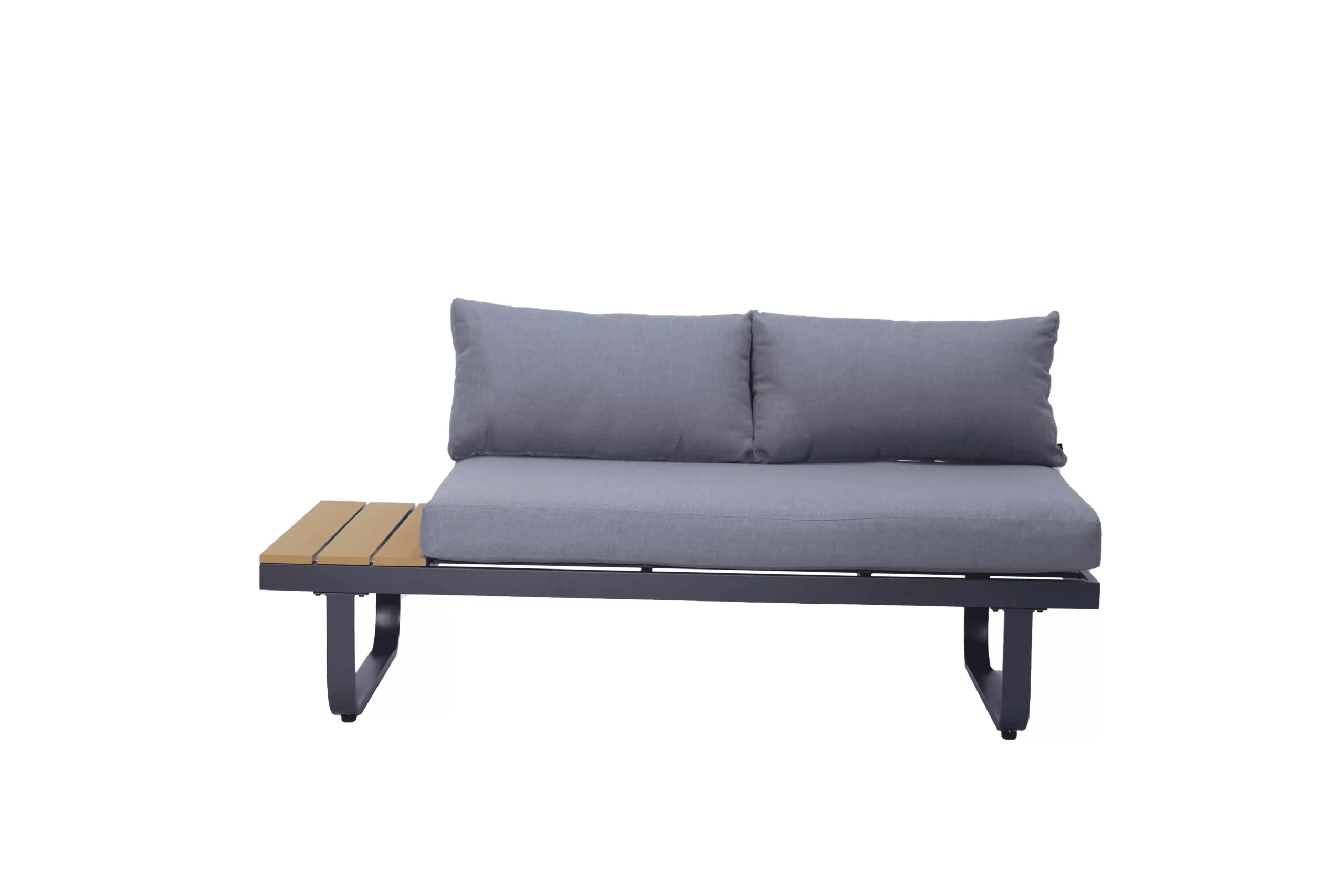 - Minkšta kampinė sofa su dekoratyviniais stalviršiais. Vasaros metu ji puikiai tinka bet kuriose atvirose lauko erdvėse, kur vyksta šeimos, artimųjų ar draugų susibūrimai. Rudenį ir žiemą, kampinė sofa gali atrasti savo vietą papildant svetainės ar kitų kambarių interjerą.