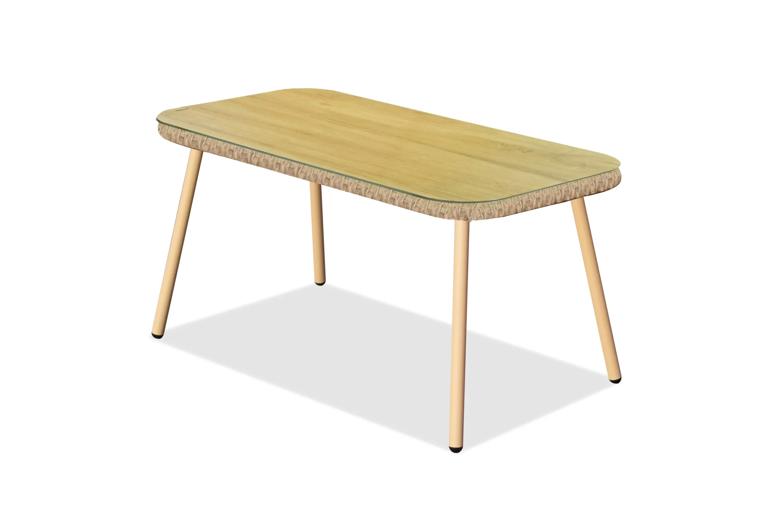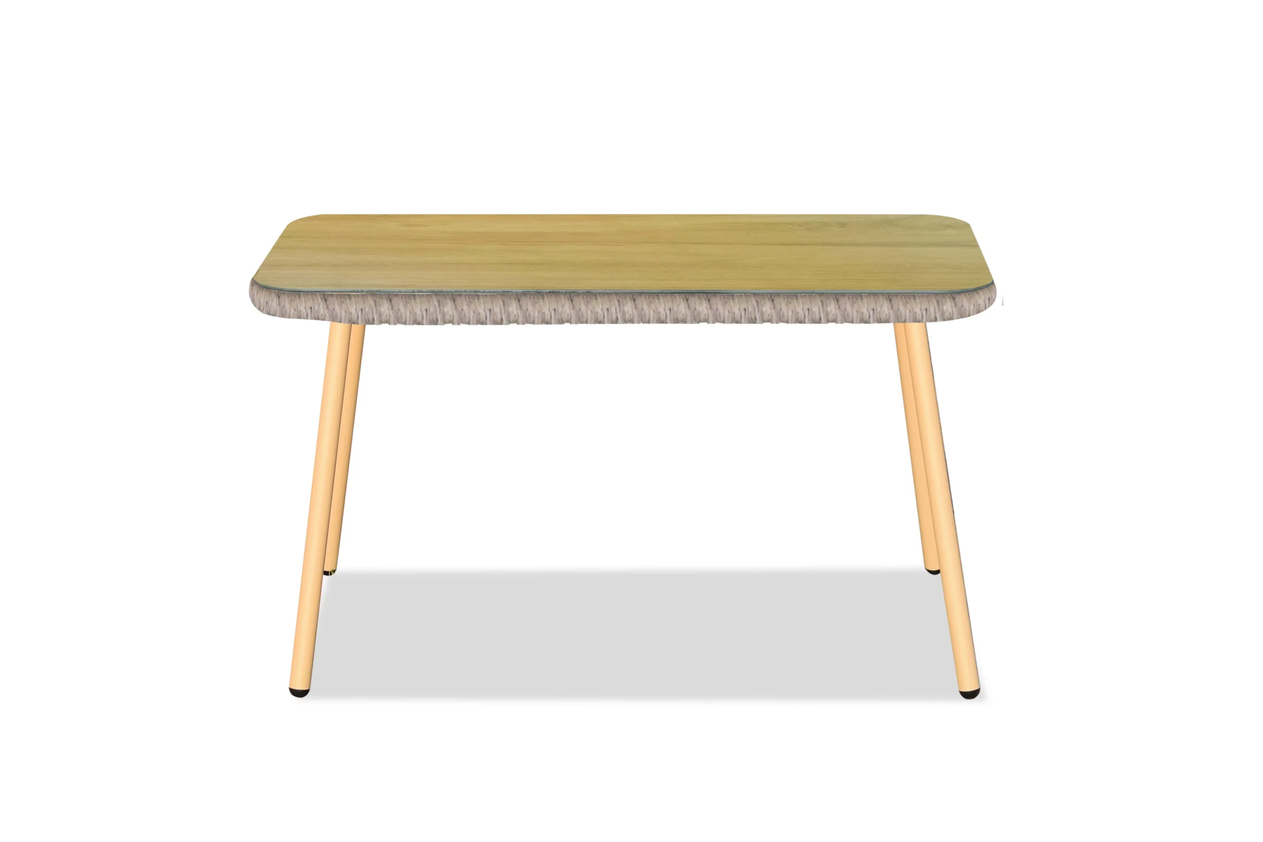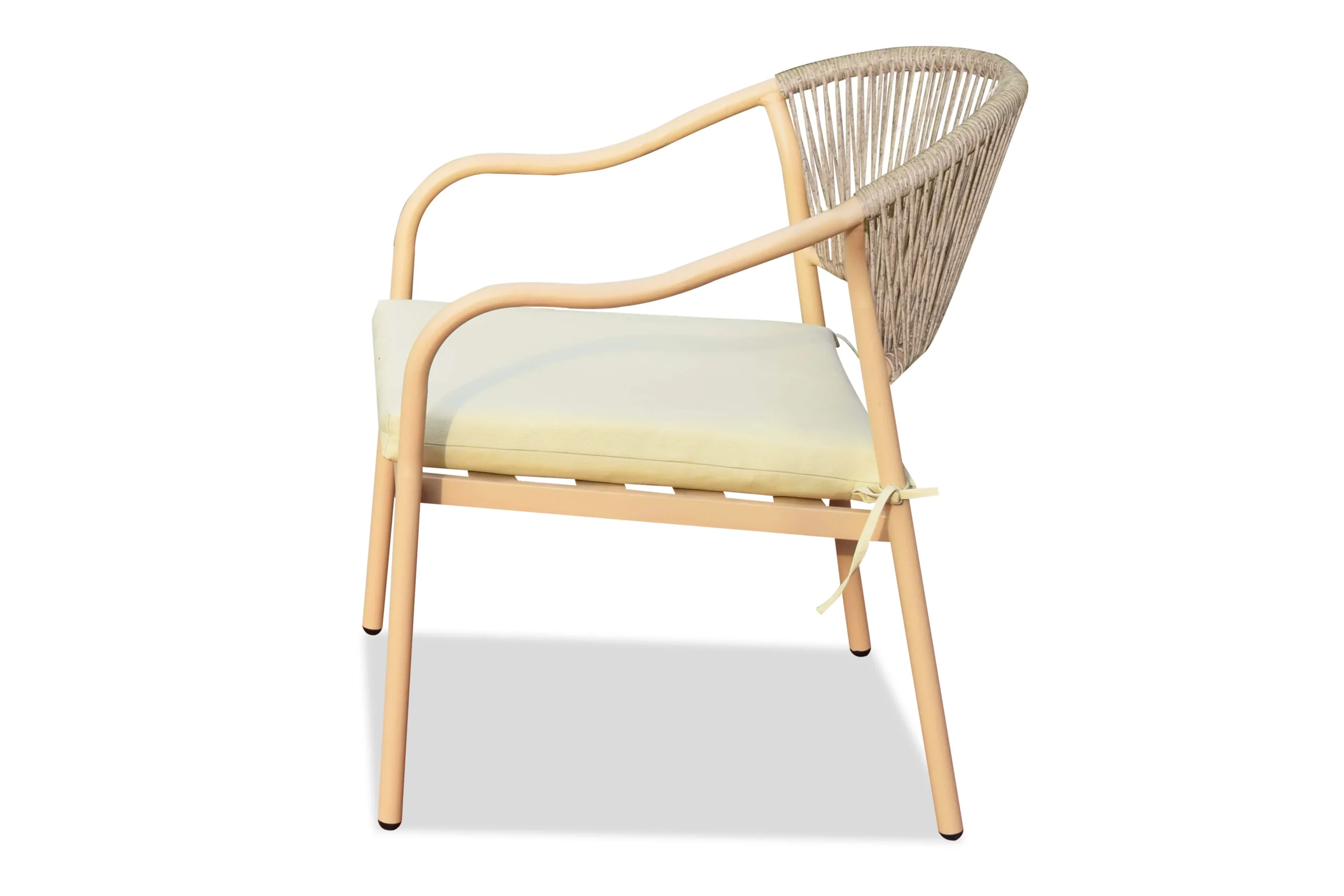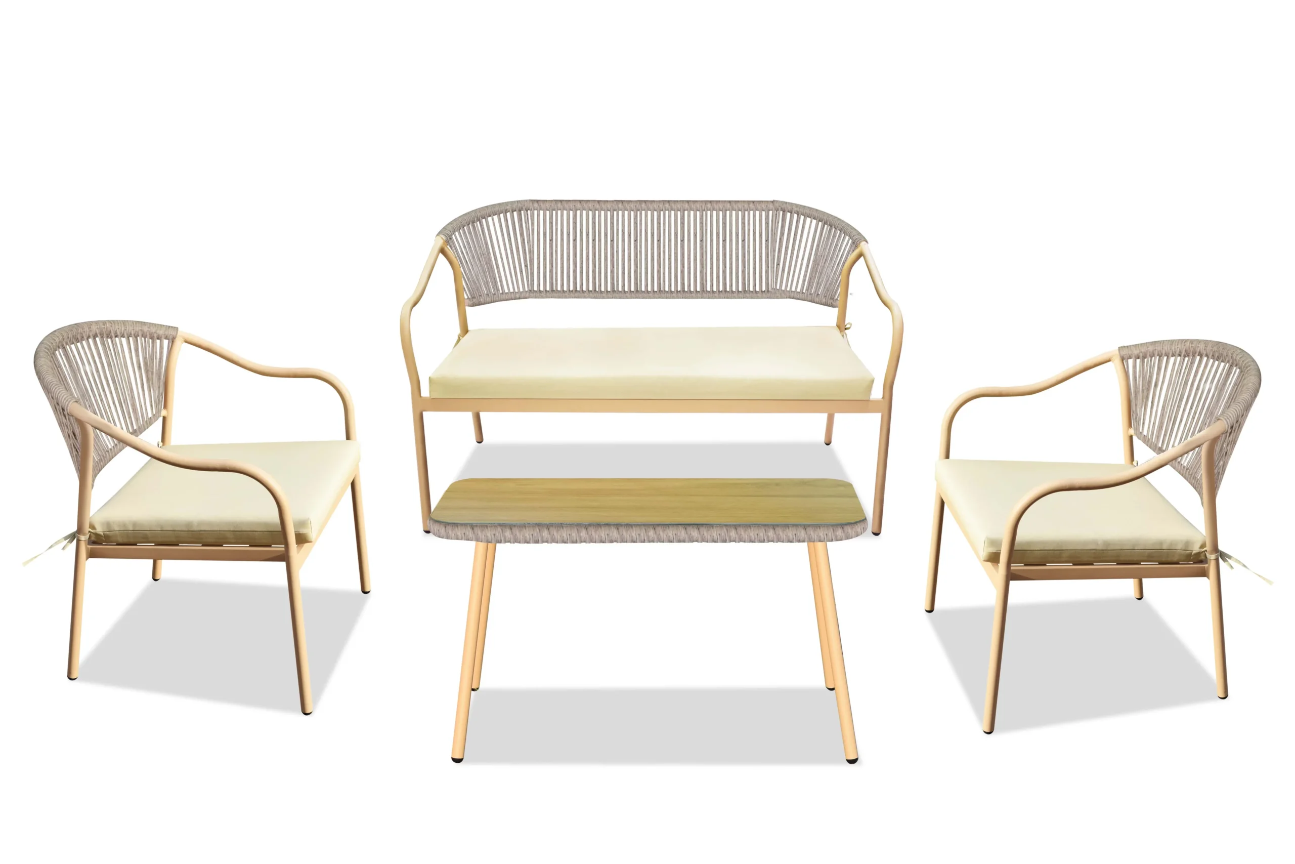 Jei jaučiate silpnybę mediniams, natūraliems ir rankų darbo lauko baldams – jums patiks šis šviesiai pastelinių spalvų komplektas. Jis yra įkvėptas gamtos, todėl lengvai sukurs ramybės ir poilsio oazę balkone, teras ar kitose laisvalaikio erdvėse. Taip pat šis lauko baldų komplektas tinka ir lauko kavinių bei restoranų erdvėse.