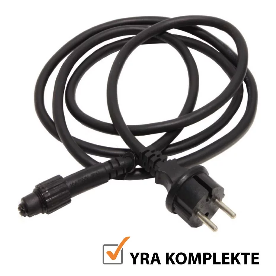 Jeigu nuo vietos, kurioje kabinsite lemputes iki elektros lizdo yra didesnis atstumtas, tuomet galite įsigyti papildomą lempučių girliandų prailginimo kabelį. Pasirinkti galite iš baltos ir juodos spalvos priklausomai nuo lempučių girliandos laido spalvos.