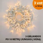Esant poreikiui apšviesti didelius objektus ar erdves, tokias pačias girliandas galite jungti į vieną (visi reikalingi jungtukai yra prekės komplektacijoje) ir prijungti prie vieno elektros šaltinio.