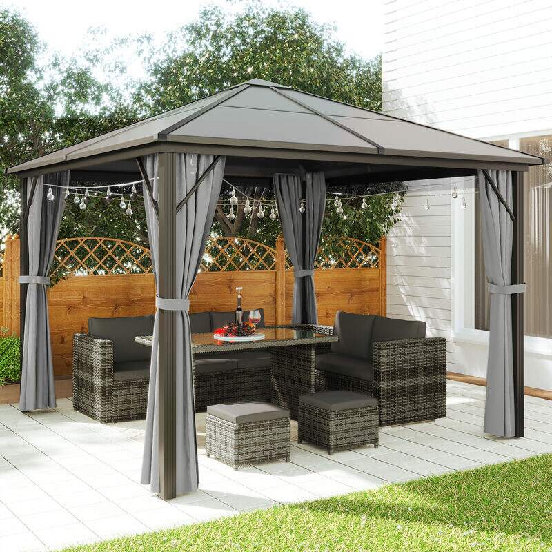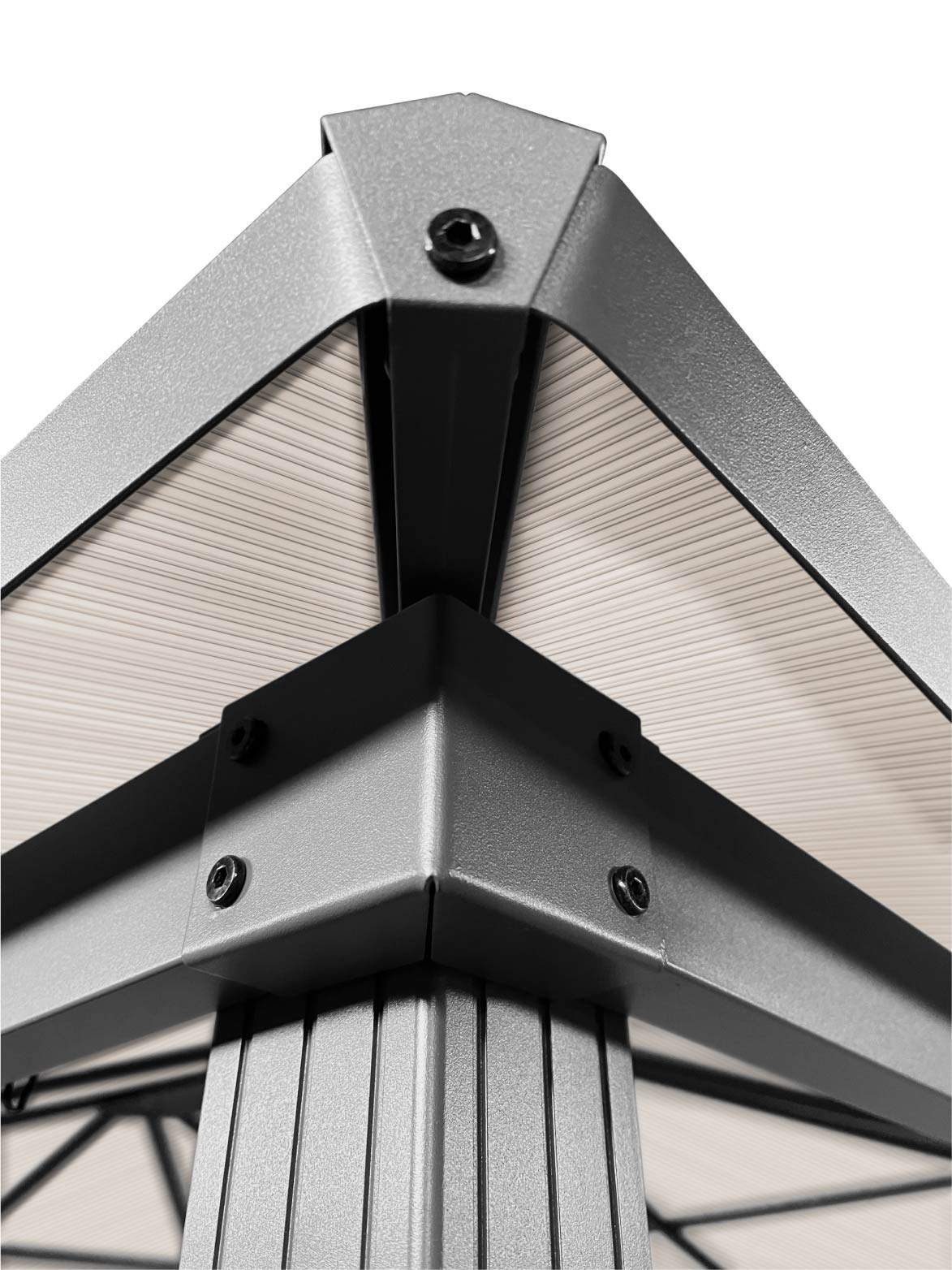 Aukščiausios klasės aliuminė lauko pavėsinė Zeltpro Deluxe 300×300 pilka su polikarbonatiniu stogu – norintiems kokybiško ir ilgaamžio sprendimo.
