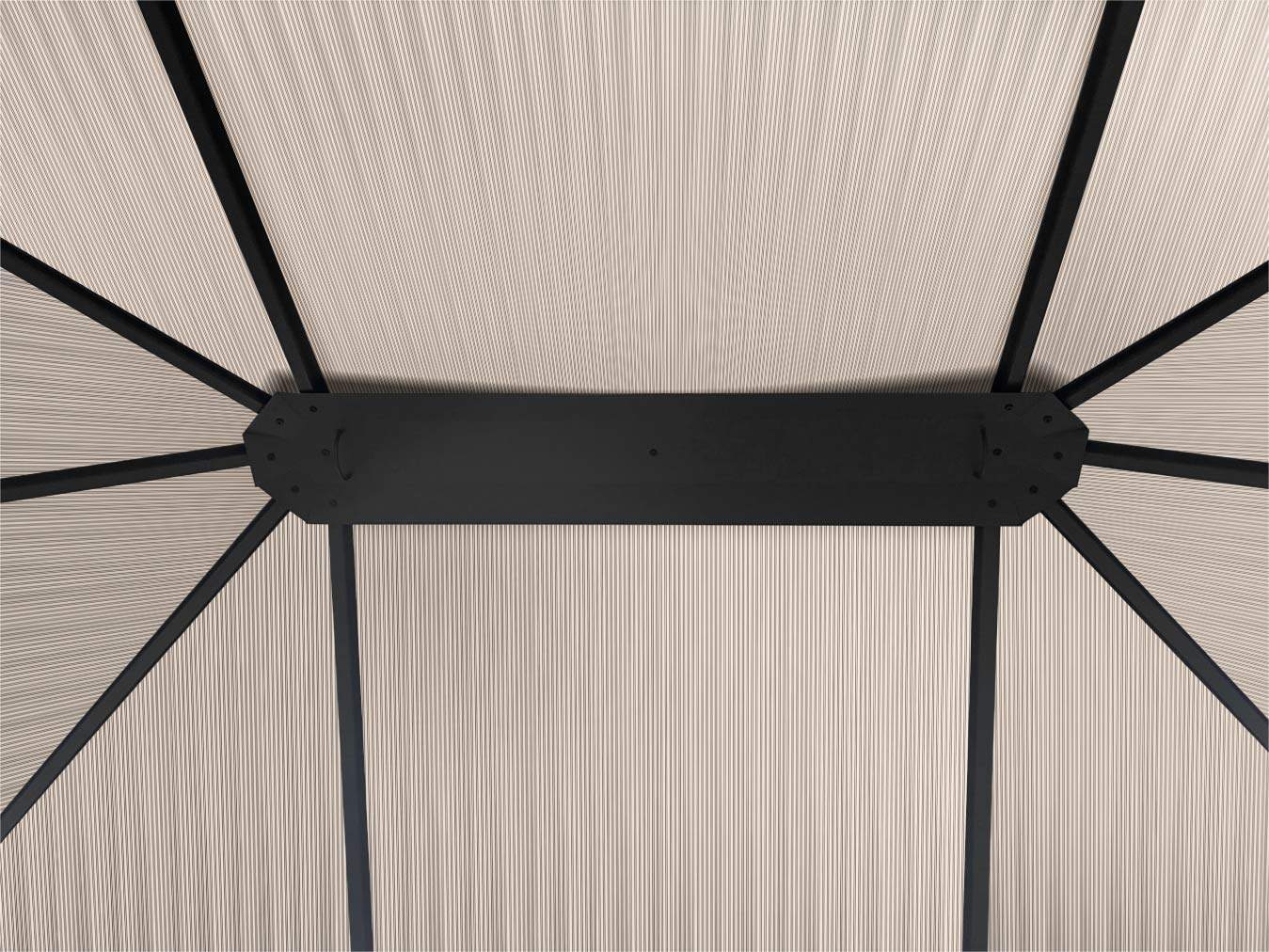 Aukščiausios klasės aliuminė lauko pavėsinė Zeltpro Deluxe 300×300 kreminė su polikarbonatiniu stogu – norintiems kokybiško ir ilgaamžio sprendimo.