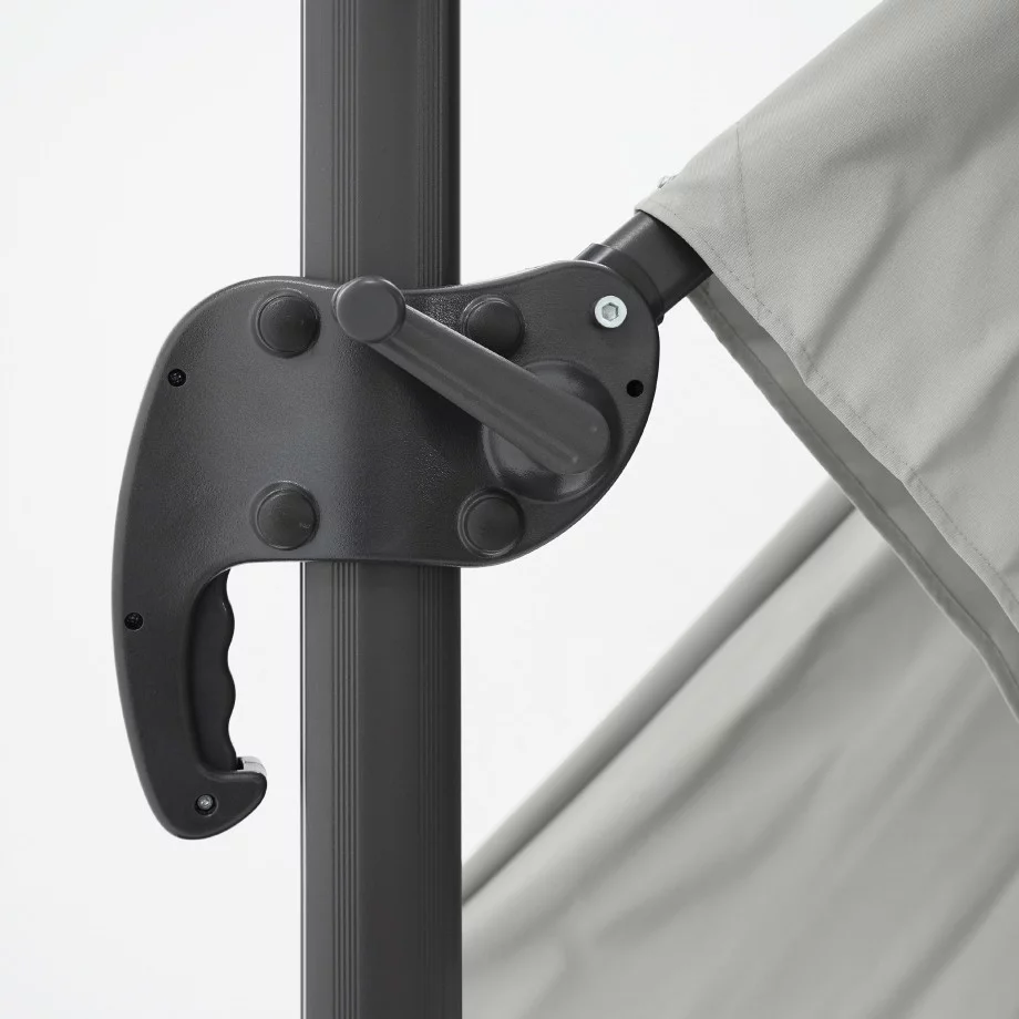 Šviesiai pilkos spalvos lauko skėčio modelis Comfort pasižymi dar didesniu mobilumu ir universalumu! Galimybė keisti stogo konstrukcijos padėtį tiek vertikaliai, tiek 360 laipsnių aplink stovą. Aukščiausios kokybės išskleidimo/suskleidimo, padėties keitimo mechanizmai leidžia nesudėtingai modifikuoti skėčio padėtį taip prisitaikant prie Jūsų poreikių.