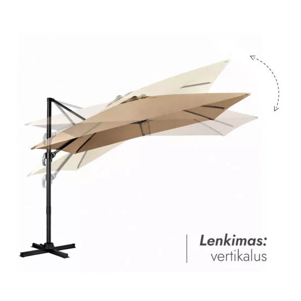 | Papildomos skėčio funkcijos | Sukasi 360 laipsnių, reguliuojasi vertikaliai. |